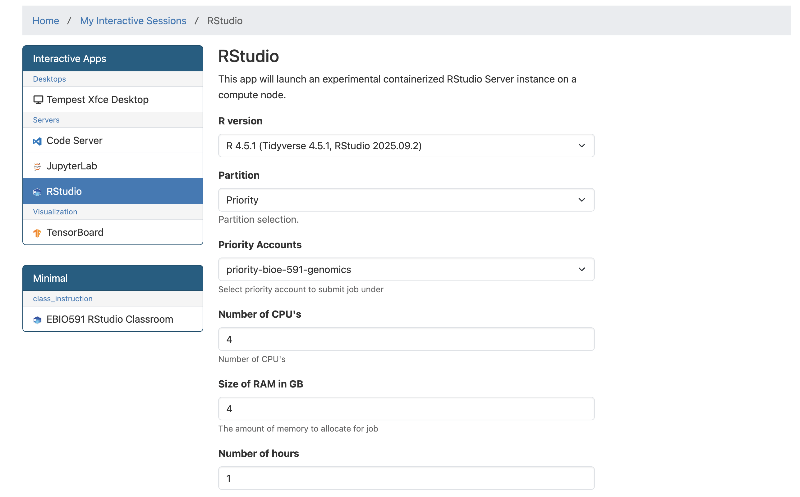 A .vcf and associated metadata from Meek et al. 2025 can be found in a new subdirectory in the usual location (bioe-591-genomics/course-materials/data/selection/). We will again use the Tempest Web portal, this time launching an interactive session with the latest version of RStudio: